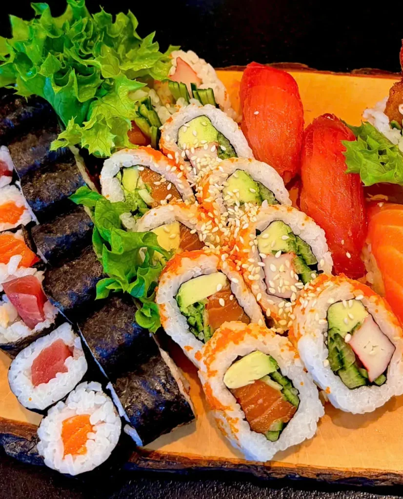 8 Lachs Maki, 8 Avocado Maki, 8 Tuna Maki