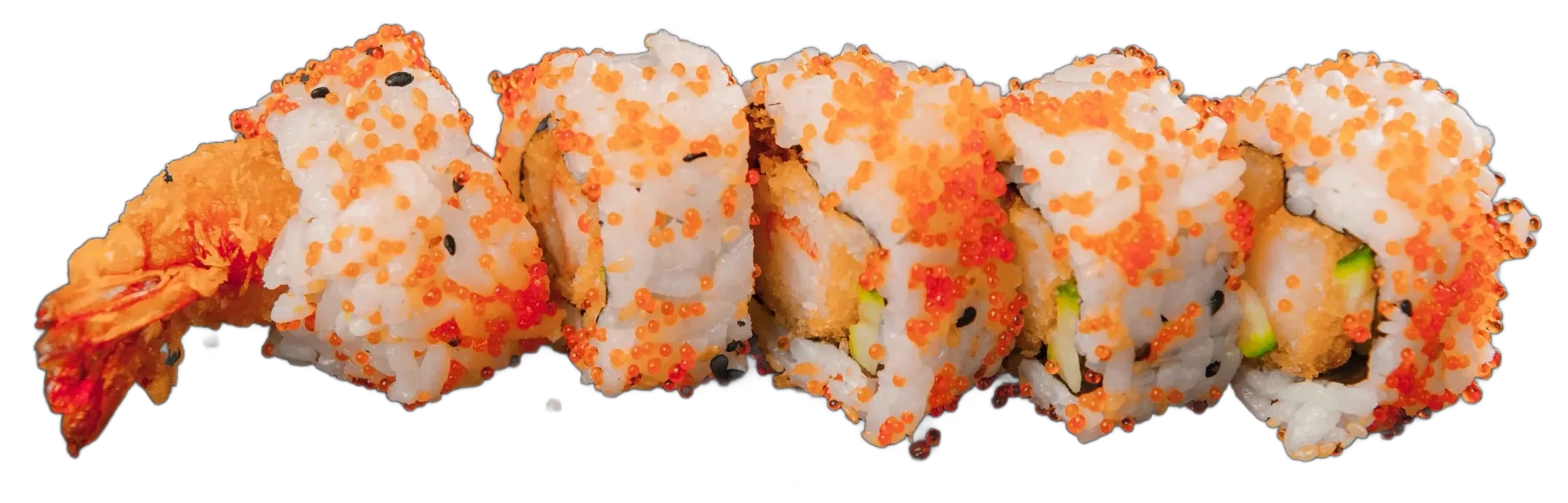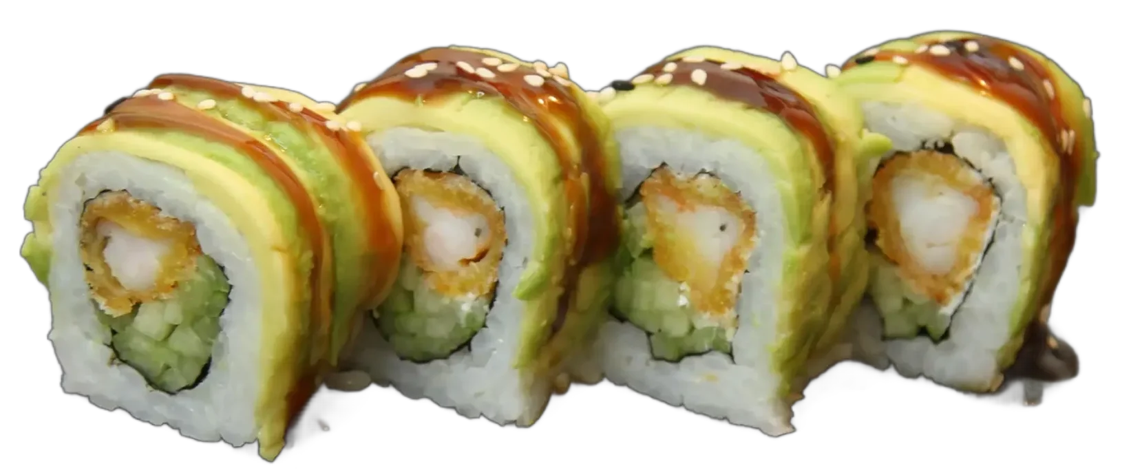 Ebi Tempura, Gurke, Mango, Sesam, außen mit Avocado, Spezialsoße