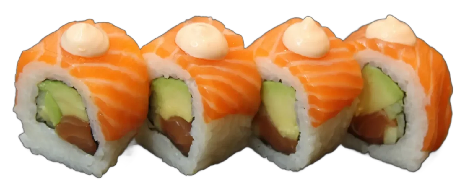 Lachs, Avocado, Mango Frischkäse, ummantelt mit frischem Lachs Mayonnaise Soße