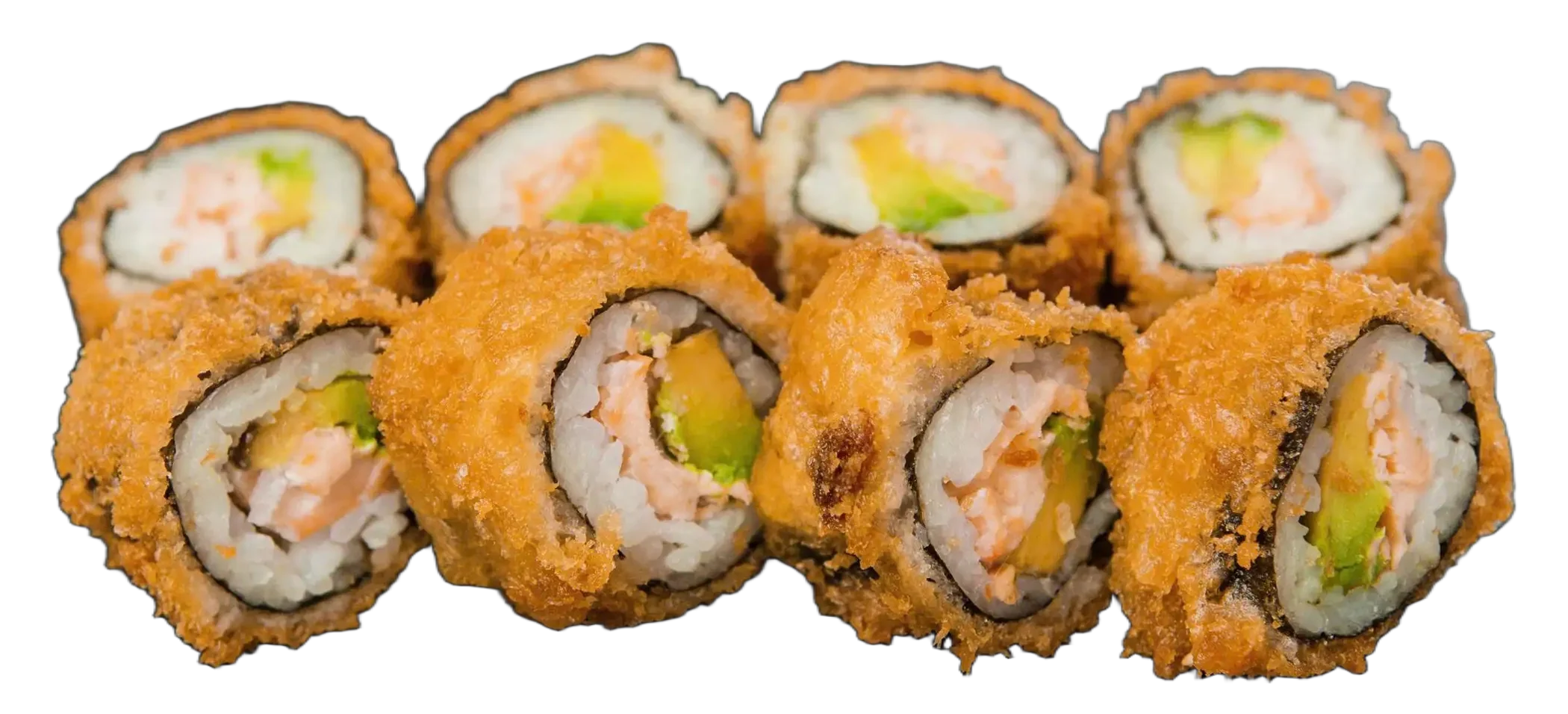 8 Ebi Tempura Roll, 2 Ebi Tempura, 8 Gebackene Salmon