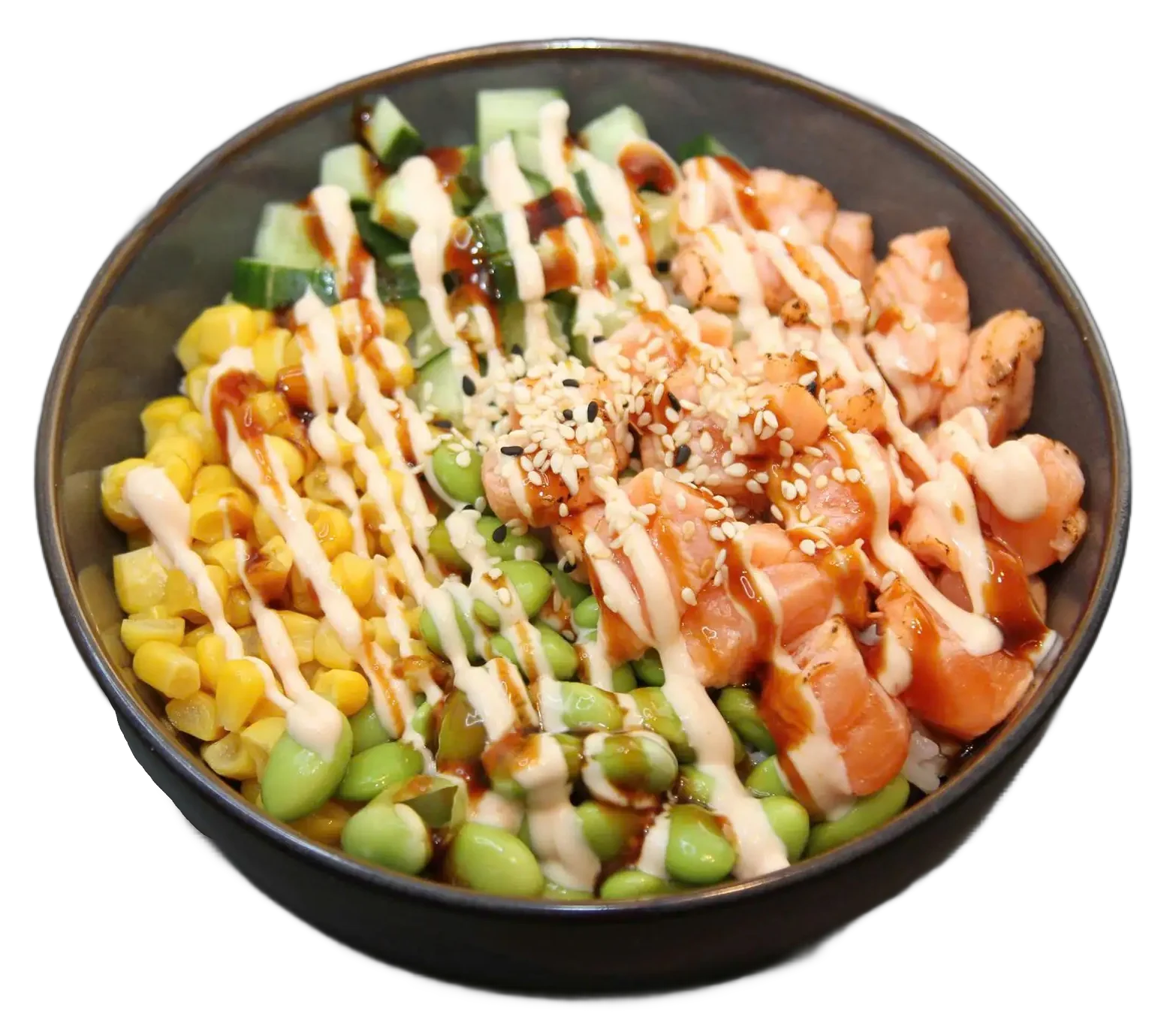 Avocado, Mais, Gurke, Sesam und Mayonnaise Soße,